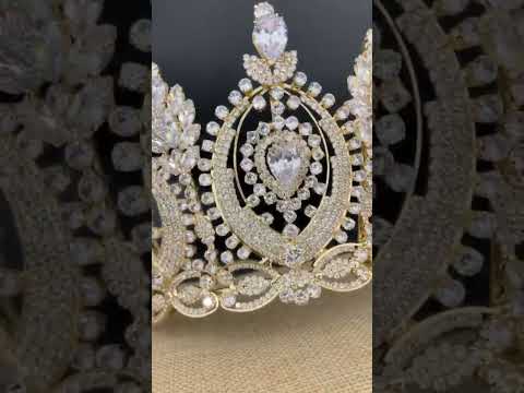 Tall Cubic Zirconia Bridal Crown and Quinceanera Tiara Shines Like Diamonds