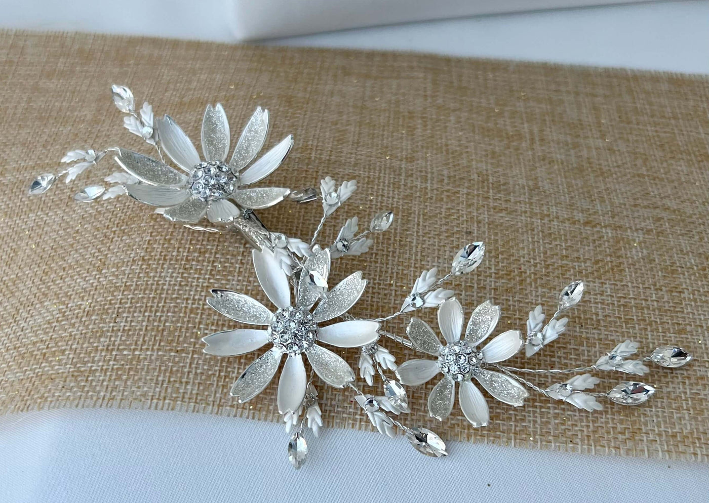 This elegant bridal hair accessory is also perfect for bridesmaids, maid of honor, and the mother of the bride. Crafted with pearl brushed flower petals and shimmering petals, it is sure to make any wedding party look stunning. The flexible design ensures maximum comfort. Perfect balance of fresh smooth shine.