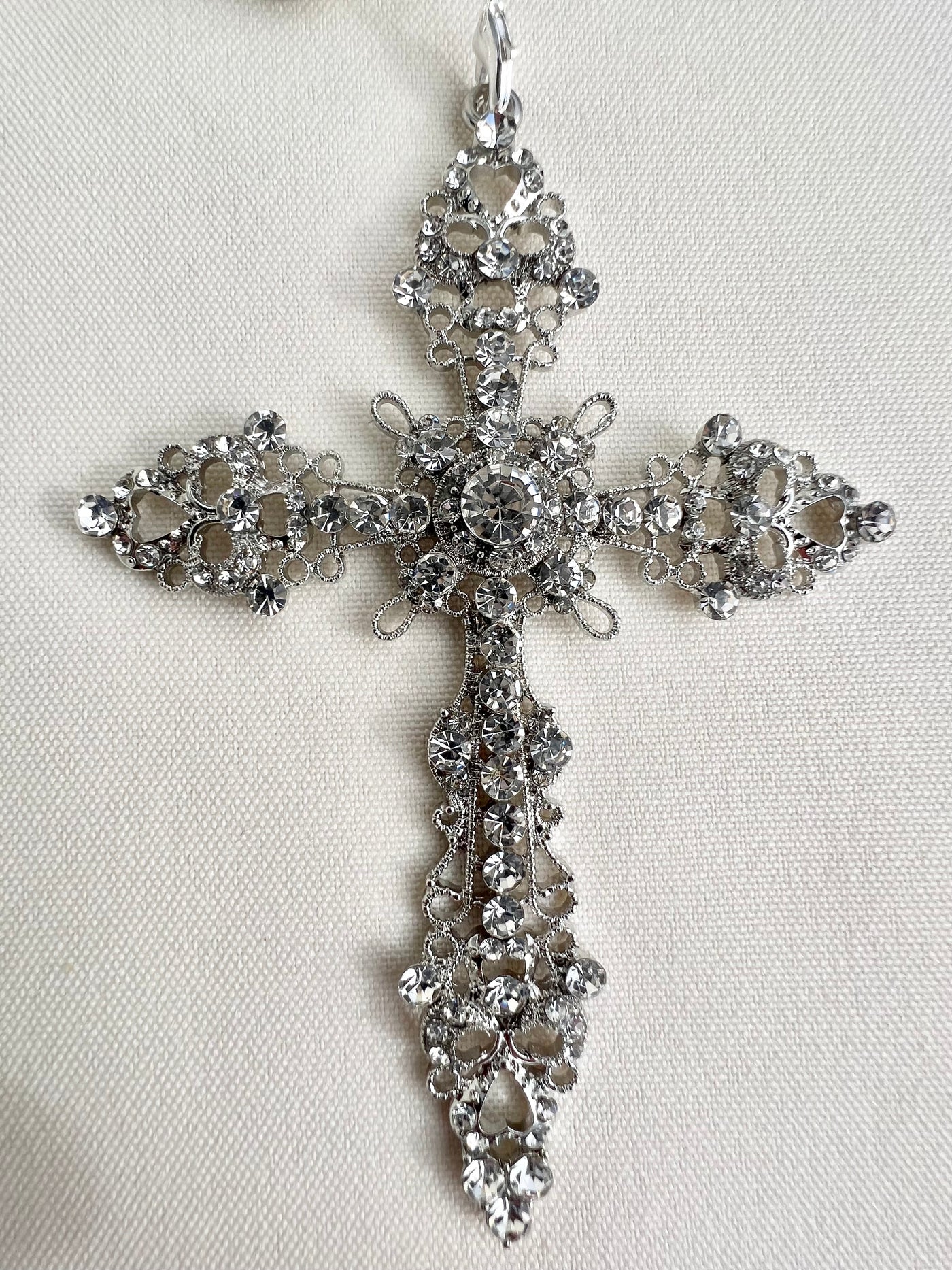 • High-quality Crystals and Rhinestone Balls , Rosegold, Silver, Gold Plated Filgree Cross encased with magnificent rhinestones