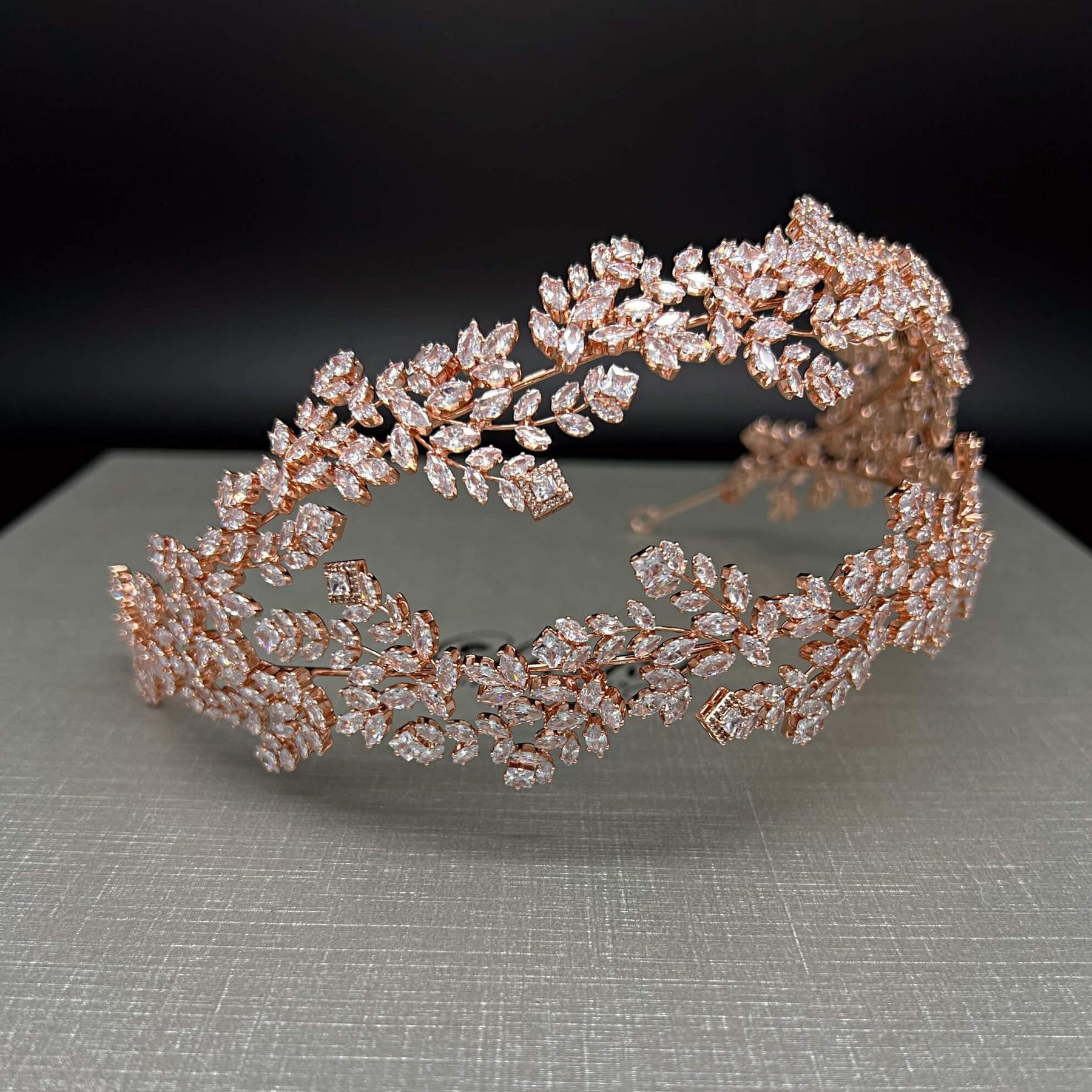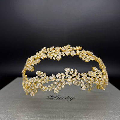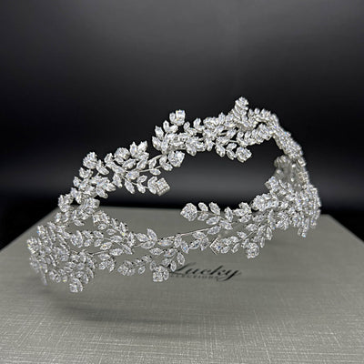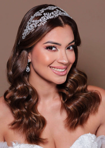 This stunning Bridal Headband is a luxe, two-row vine design headpiece for a glam bride guaranteed to make a statement. Crafted with high-quality zirconia, this headpiece shines brilliantly for all to admire. You can wear it atop your head as a headband or in the back as a bridal hair accessory.