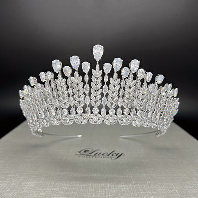 Elegant Tiara made with high quality Round, Marquise and Tear Drop Cubic Zirconia. Large Teardrop Gems add height and stature to this magnificent piece.
