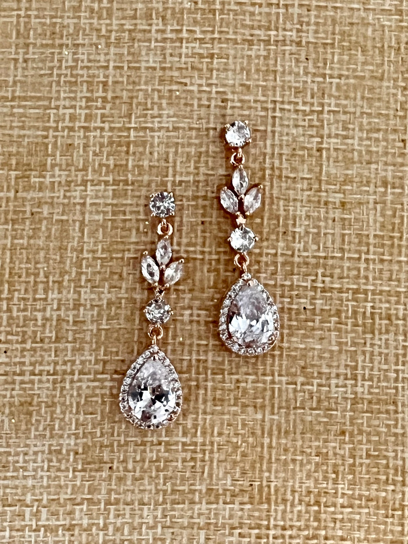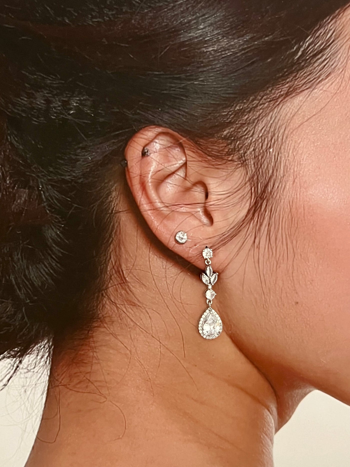Enjoy the luxury and style of these dazzling drop earrings on your special day.