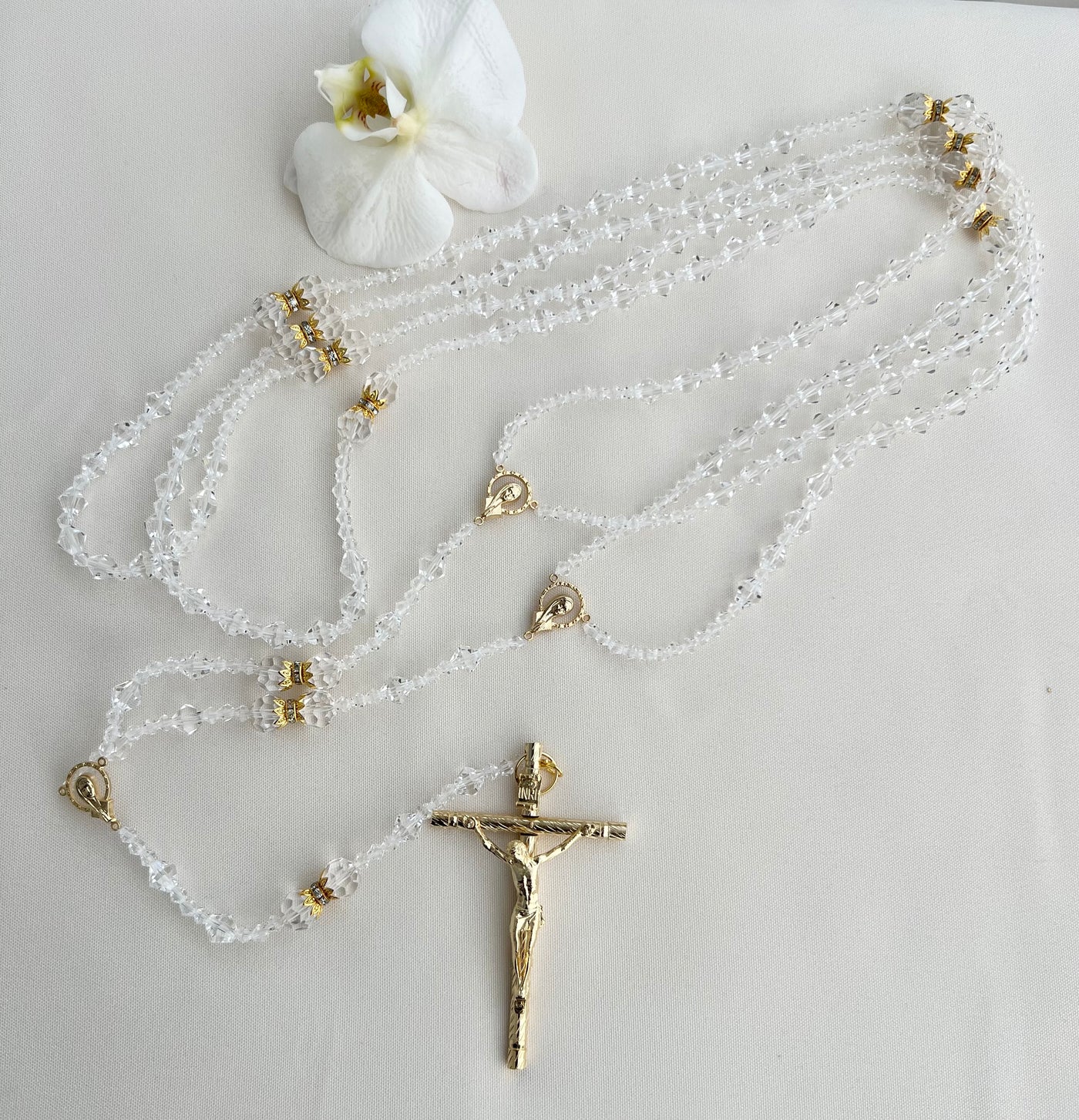 Lazo de Boda, Wedding Lasso with Cross, Diamond Shaped Cut Crystal Bead by Lucky Collections™