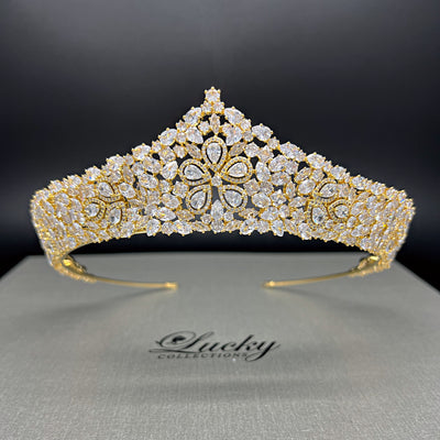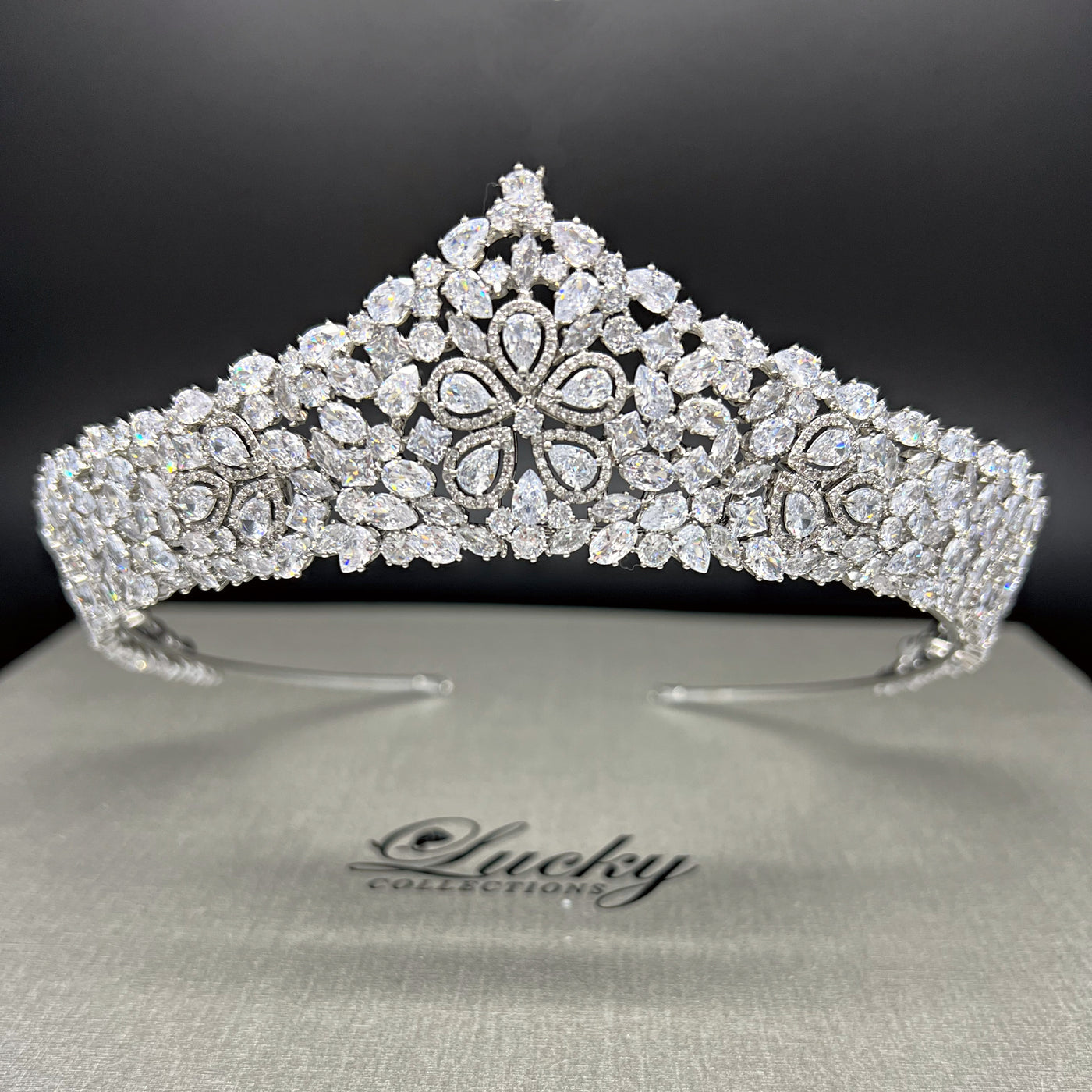 Tiara, Zirconia, Peak and Central Flower design , Wedding and Quince Favorite